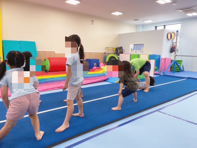 体操教室は色もカラフルで私たちが大好きな雰囲気だったよ。もちろんマットを走ったり、でんぐり返りしたりとか楽しかったから入会しまーす!!!